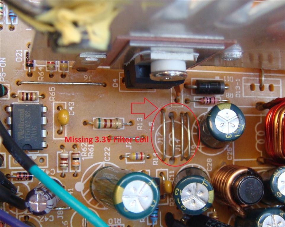 Missing 3.3 voltage filter coil.