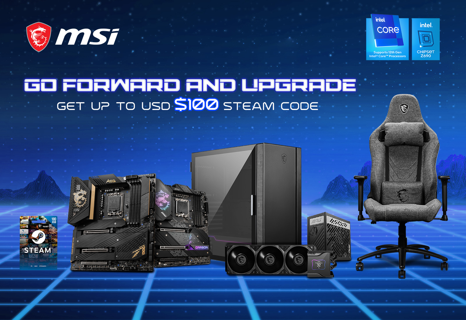 We announce a new promotion – "Go Forward and Upgrade". Once you buy selected eligible components products you will get steam code worth up to USD 100. If you also join Shout out for MSI campaign, for gaming series you can get more USD 20 steam code!