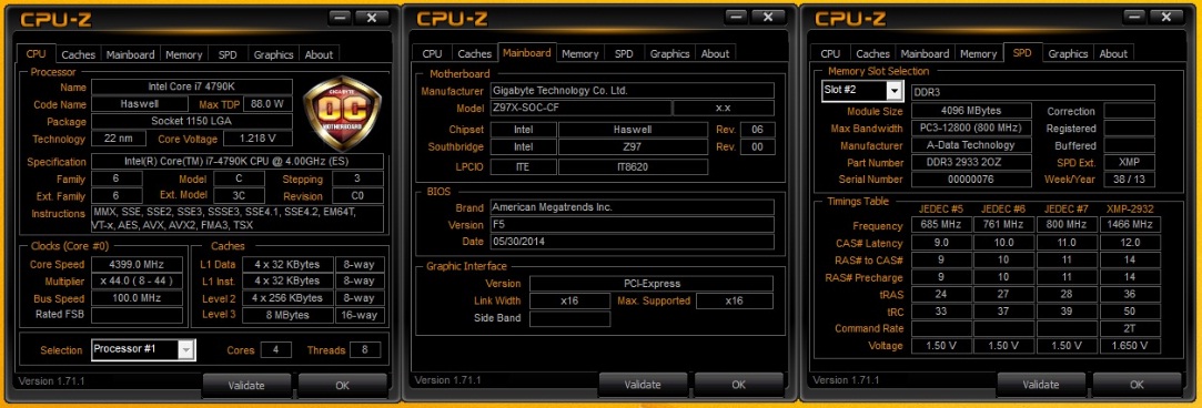 Overclocking on Gigabyte Z97X-SOC was very easy. Auto tuning feature of Gigabyte's EasyTune application took Intel i7-4790K from stock 4GHz to 4.4Ghz easy and further tweaking system was stable at 4.7Ghz.